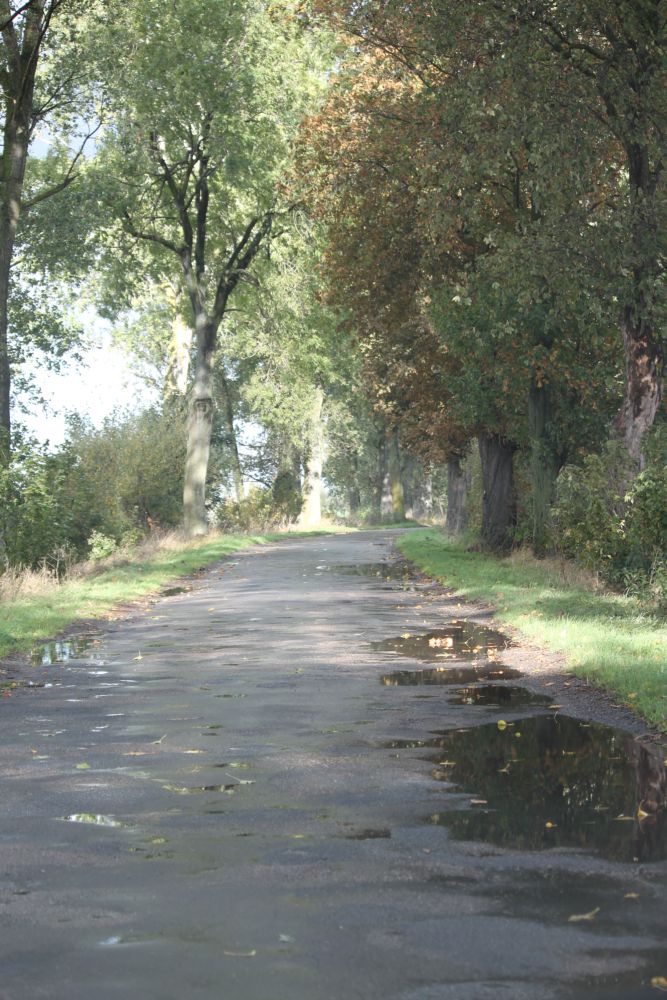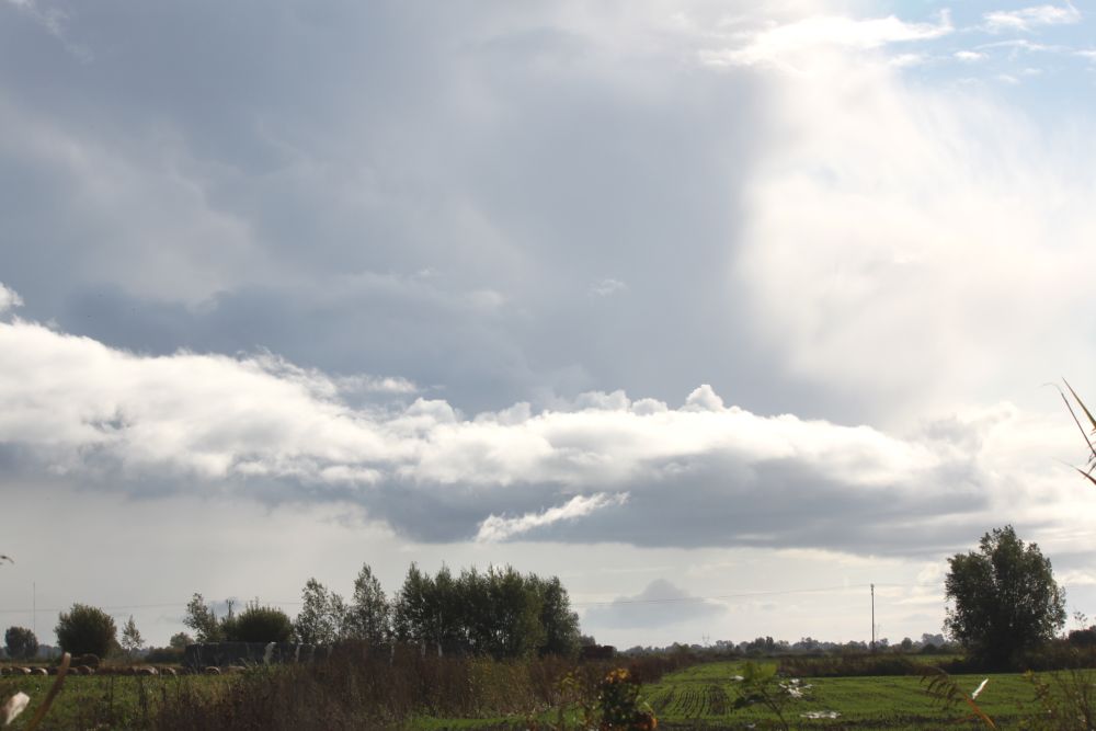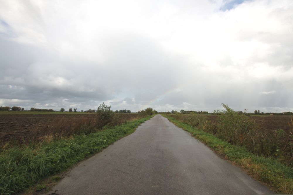 Nie mam zdjęć deszczu – bo nie miałam odwagi wystawić aparatu z samochodu. Ale mam zdjęcia nieba, dróg, tęczy i żuławskich zauroczeń dalą. Czy raczej przejrzystością krajobrazu – jak mawia prof. Boga Jakubowska.