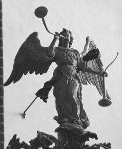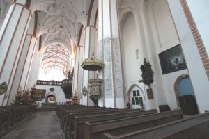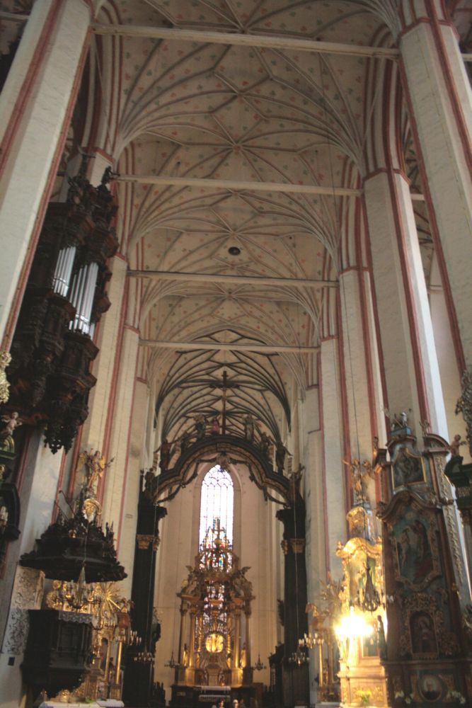 W roku 1618 wybuchł pożar, w wyniku którego kościół uległ zniszczeniu. Powód pożaru (i zniszczenia) kościoła był prozaiczny: przeniesienie się ognia z sąsiednich zabudowań. Podczas opracowywania tematu – szukałam jakichś szczególnych informacji o pożarze, może sensacyjnych. Poszukiwałam jakiegoś zewnętrznego powodu, wojny, grabieży, czy co najmniej burzy z piorunami. No i natychmiast utknęłam i wydawało się, że już nigdy nie ruszę… To był rok śmierci Albrechta Fryderyka. I natychmiast moje poszukiwania zeszły na boczny tor. Jakie bowiem skutki niosła za sobą ta śmierć, czy naprawdę był chory psychicznie, czy tylko zawadzał politycznie? czy gdyby stało się inaczej, niż się stało, mielibyśmy Traktaty Welawsko-Bydgoskie (TUTAJ też ciekawy artykuł Jacka Wijaczki)? Przy sposobności przypomniała mi się toruńska wystawa Srebrnej Biblioteki Albrechta (tego od krakowskiego Hołdu Pruskiego. Swoją drogą, dlaczego pamięta się tylko ten hołd, a zapomina się o pozostałych, od Traktatu Toruńskiego II? TUTAJ ciekawe XIX-wieczne spojrzenie na hołdy). Wystawa miała miejsce parę lat temu. Niestety trwała krótko i zorganizowana była w szczycie sezonu turystycznego 😦 i z tego powodu mnie ominęła. Itd, itd… Zresztą, ja zwyczajnie lubię tego akurat Hohenzollerna. Albrechta (ojca) też lubię. Polecam ciekawą książkę Panorama Lojalności, dającą obraz owych czasów.
